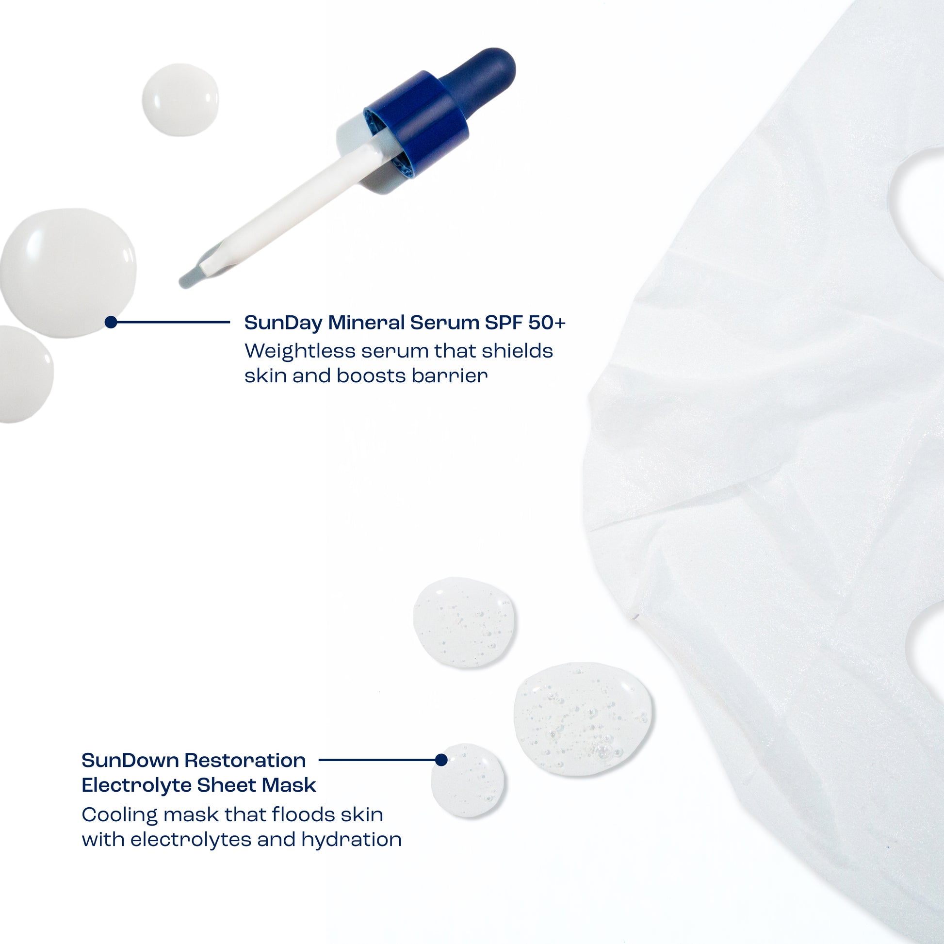 The Skin-First Set pairs the barrier-supporting, broad-spectrum protection of Mineral Serum SPF 50+ with the Restoration Electrolyte Sheet Mask, a cooling treatment infused with electrolytes, magnesium PCA, and coconut water. Together, they protect against daily damage while helping improve tone, texture, and overall skin health.