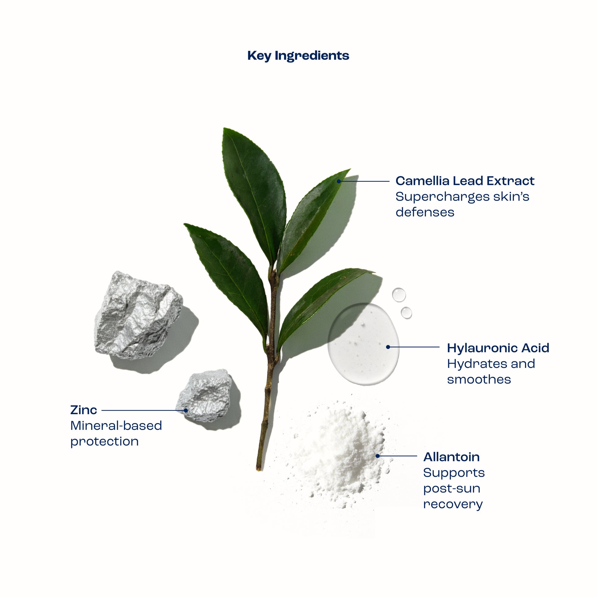 Titanium Dioxide 2%, Zinc Oxide 12%, Allantoin, Avena Sativa (Oat) Kernel Extract, Bisabolol, Butyloctyl Salicylate, C12-15 Alkyl Benzoate, Camellia Sinensis Leaf Extract, Caprylyl Glycol, Ceteth-20, Cetyl Alcohol, Dicrateria Rotunda Oil, Dimethiconol/