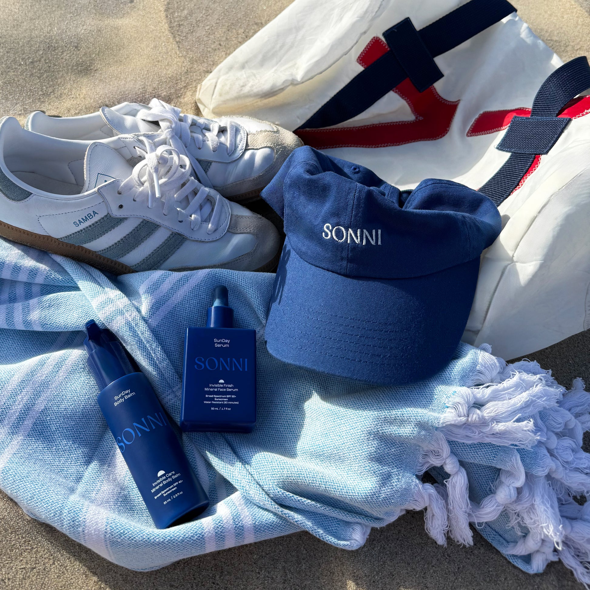 Your all-season shade solution in signature SONNI blue. Classic six-panel with crisp white embroidery. For bright days, bad hair days, and/or every day the sun rises.